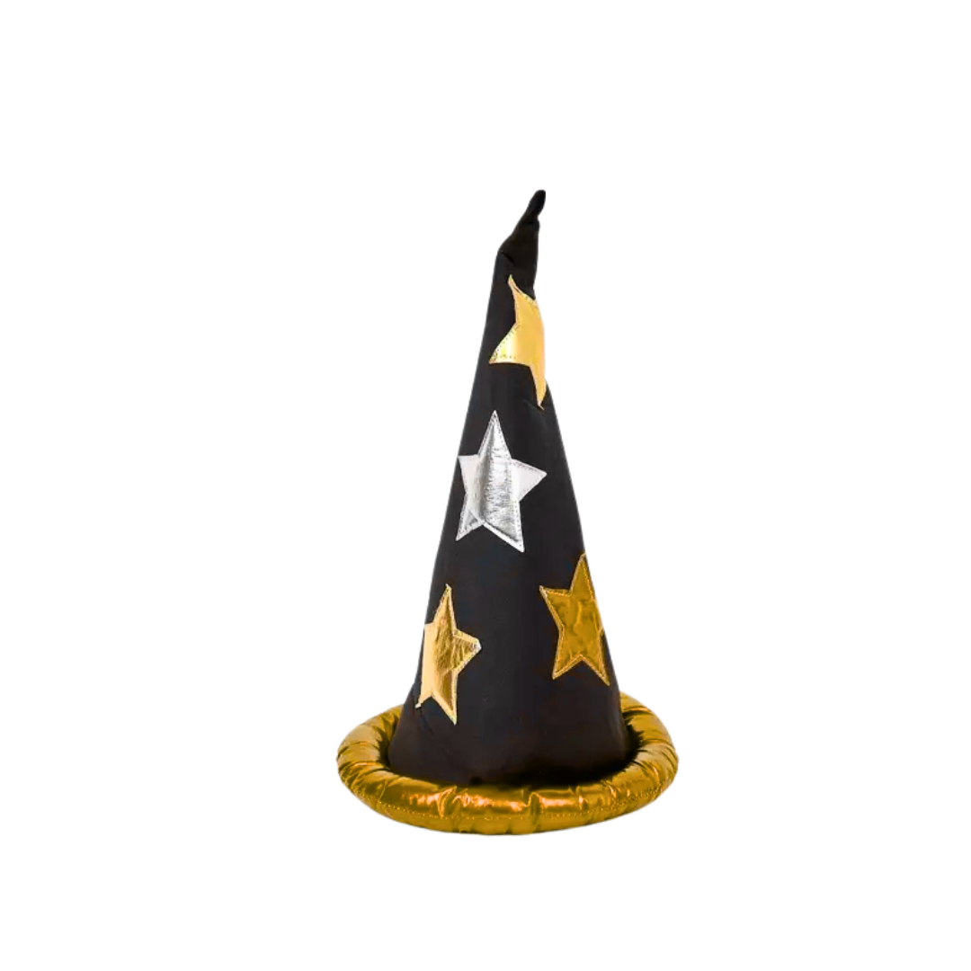 Summon style and a pinch of mischief with this black wizard hat! Adorned with dazzling silver and gold stars and trim, it's not just an accessory—it’s your ticket to magical charm. Whether you're conjuring spells, dazzling at a costume party, or simply embracing your inner wizard, this hat is pure magic!